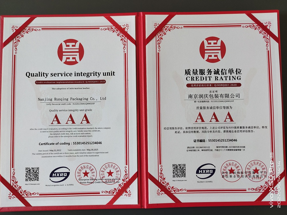 “誠信爲本、客(ke)戶至上,服務周(zhou)到,質量第一,創(chuàng)新緻遠”我們銘(míng)記企業的生存(cún)之道,對産品的(de)質量嚴厲要求(qiu),對客戶的服務(wu)永無止境,争做(zuò)南京紙制品行(háng)業的佼佼者!!!!